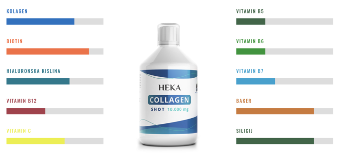 HEKA Kolagen shot je tekoče in visoko koncentrirano prehransko dopolnilo, ki vsebuje 10.000 mg ribjega kolagena tipa I in III, hialuronsko kislino, vitamin C in druge ključne vitamine za najboljši izkoristek.